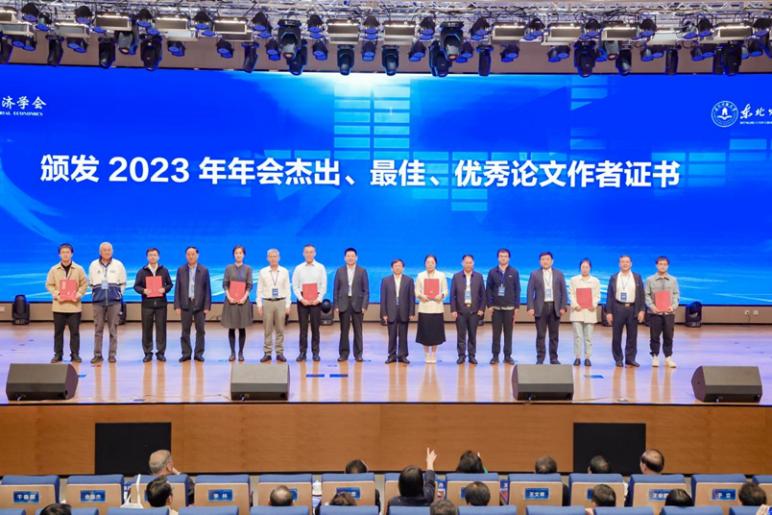 于立等8位教授为中国工业经济学会2023年学术年会获奖论文作者颁发证书