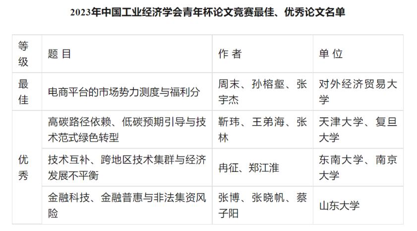 王俊豪等4位教授为2023年中国工业经济学会青年杯论文竞赛获奖论文作者颁发证书